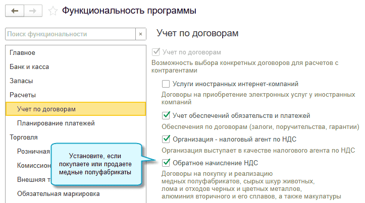 Чтобы воспользоваться, достаточно выполнить настройку функциональности и указать в карточке договора его вид для НДС.