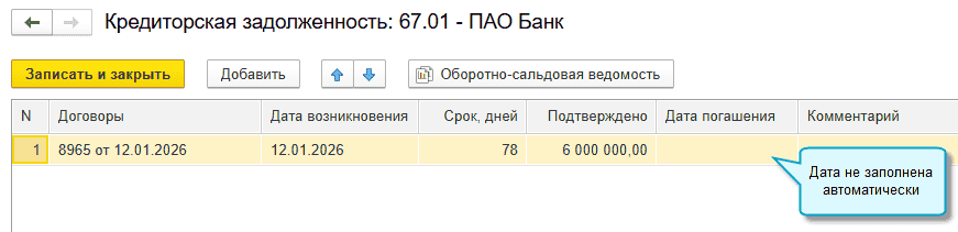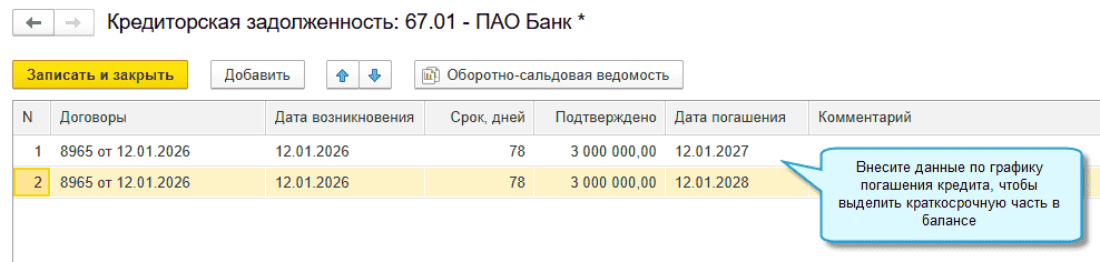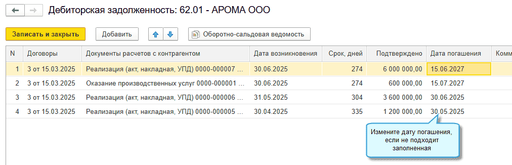 Когда по договору заполняется график платежей (договоры аренды и лизинга, поступление с рассрочкой), то данные о сроках погашения берутся из этого графика.