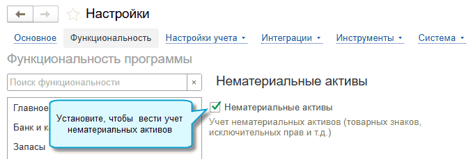 Добавлена возможность вести учет нематериальных активов (НМА).