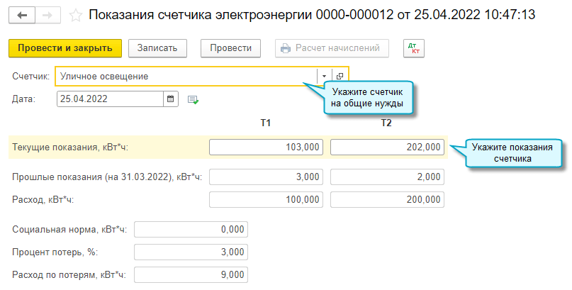 Аналогично ведется учет показаний счетчиков воды на общие нужды.