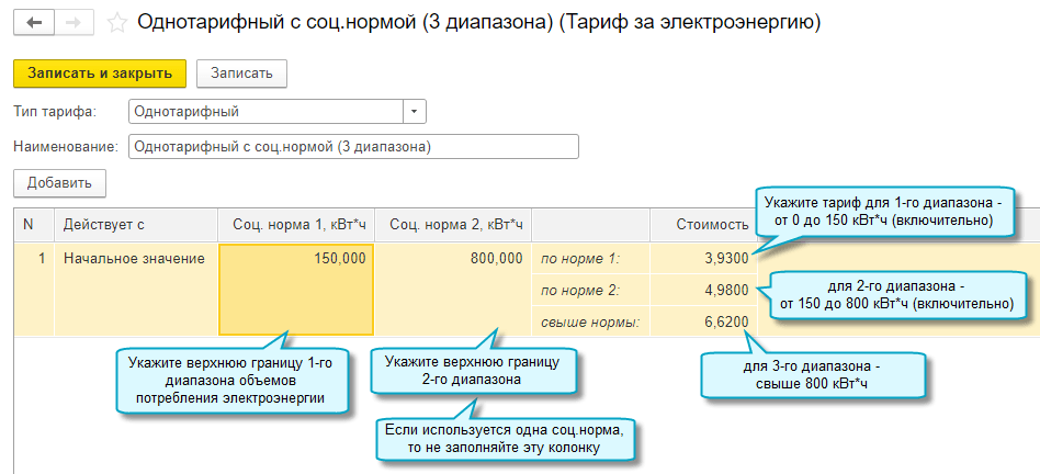 Добавлена возможность начислять взносы за электроэнергию по тарифам, установленным для трех диапазонов объемов потребления электроэнергии (мощности).