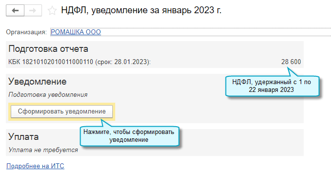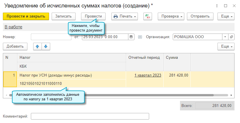 Подробнее о заполнении уведомления об исчисленных суммах налогов см. в Статье.
