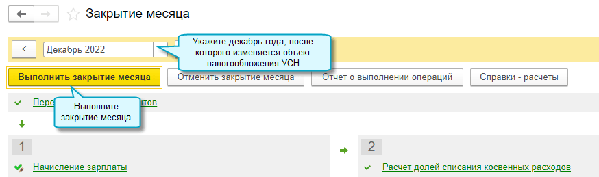 Простой интерфейс: меню "Бухгалтерия - Закрытие периода - Закрытие месяца".