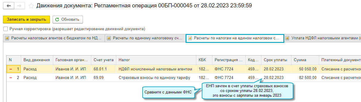 Используйте документ Операция по ЕНС с видом операции Налоги (уплата) или Пени, штрафы (погашение) для корректировки распределения ЕНП между налогами, пенями и штрафами, если автоматически выполненный зачет ЕНП не совпал с зачетом ФНС. Подробнее см. здесь.
