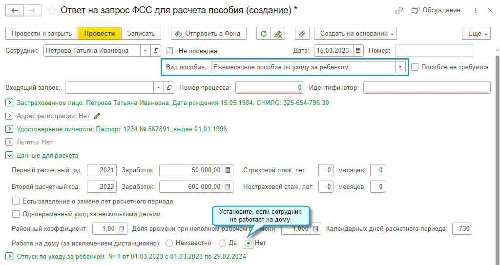 Добавлена возможность указать в документах СЭДО, работает ли на дому сотрудник, находящийся в отпуске по уходу за ребенком.