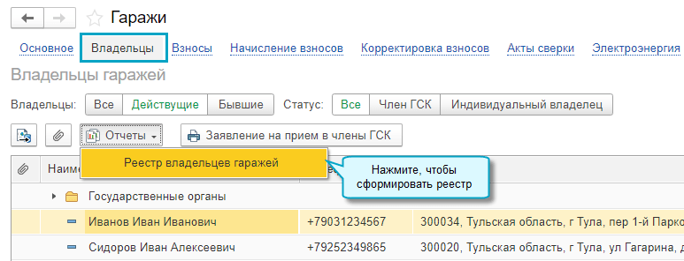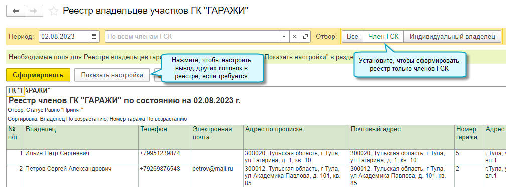 Добавлена возможность подготовить и распечатать реестр членов ГСК.
