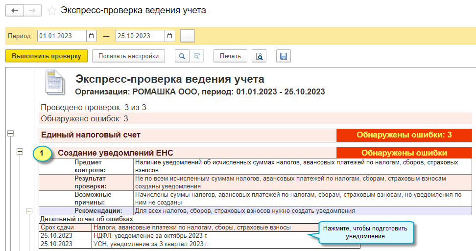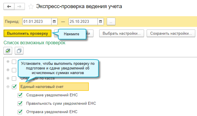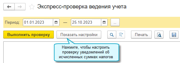 Добавлена возможность выполнить экспресс-проверку по уведомлениям об исчисленных суммах налогов.