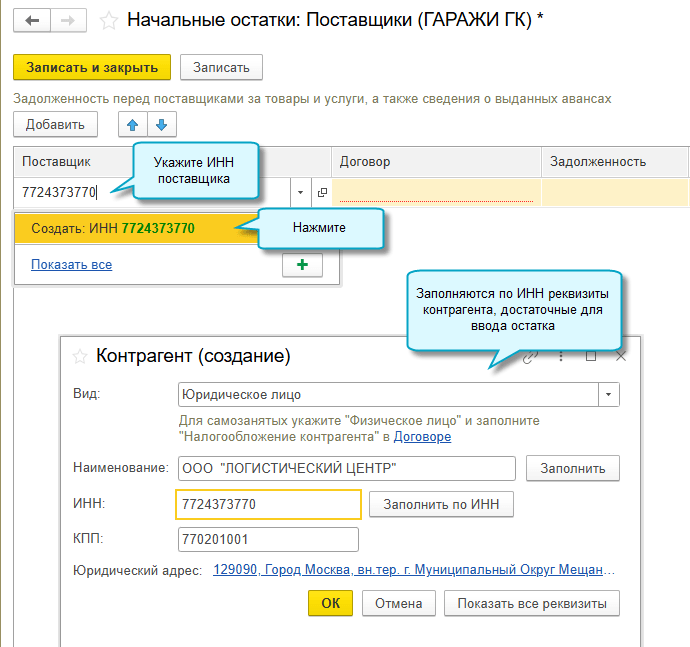 В локальных (коробочных) версиях, чтобы заполнять реквизиты контрагентов по ИНН, потребуется подключить сервис 1С:Контрагент. Подробнее о сервисе см. здесь.