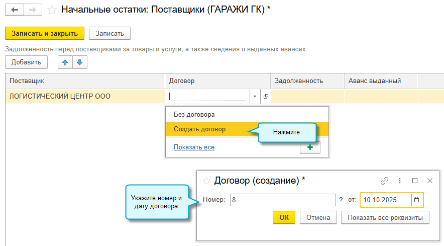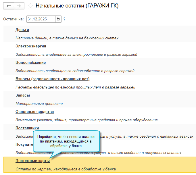 В упрощенном интерфейсе помощника по вводу начальных остатков добавлена возможность заполнять данные по контрагентам и договорам в сокращенном варианте - только те реквизиты, которые достаточны для ввода остатков. Добавлена возможность ввести начальные остатки по платежам владельцев участков и покупателей по платежным картам.