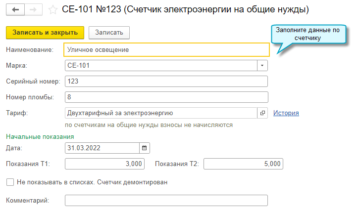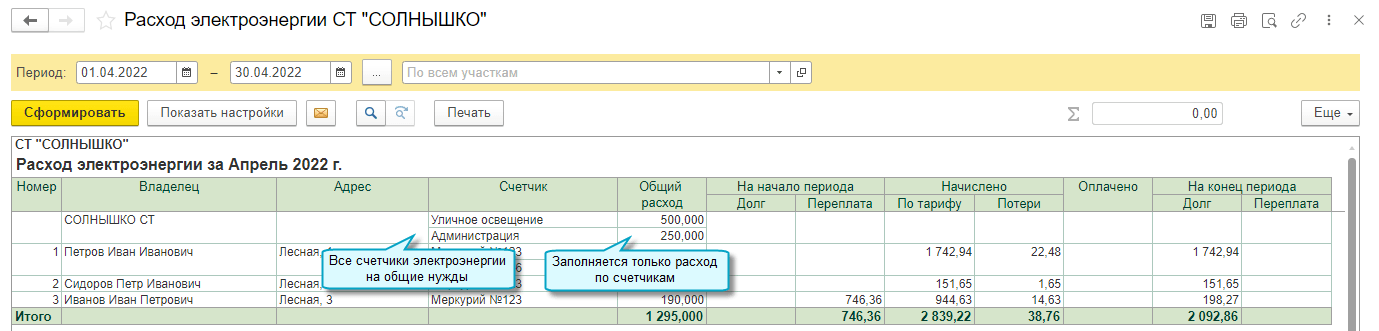 Добавлена возможность вести учет показаний счетчиков электроэнергии и воды на общие нужды СНТ (уличное освещение, обслуживание водозаборной скважины и др.).