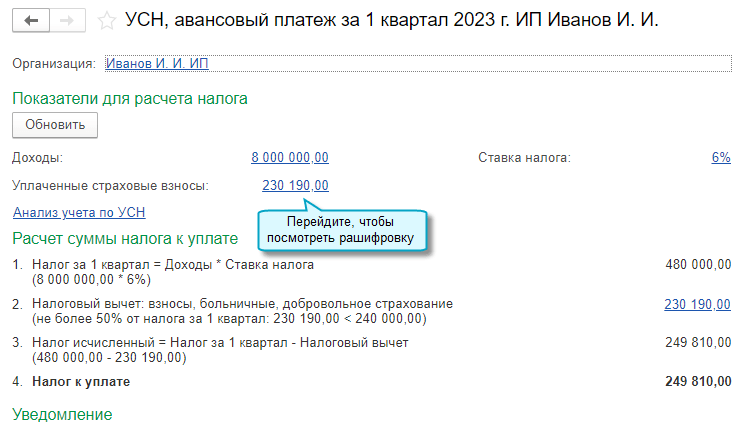 Скорректирован расчет суммы страховых взносов, уменьшающих налог УСН, в связи с тем, что с 01.01.2023 страховые взносы по единому тарифу с зарплаты сотрудников перечисляются по реквизитам единого налогового платежа (ЕНП) на единый налоговый счет.
