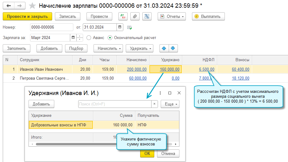 Увеличен до 150 000 руб. максимальный размер социального вычета при удержании и перечислении по заявлению сотрудника добровольных взносов на накопительную пенсию и в НПФ с 2024 года (Федеральный закон от 28.04.2023 № 159-ФЗ).