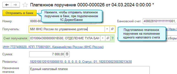 Для этого добавлен документ "Сведения об уплате налогов на едином налоговом счете".