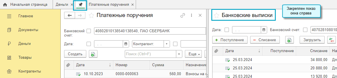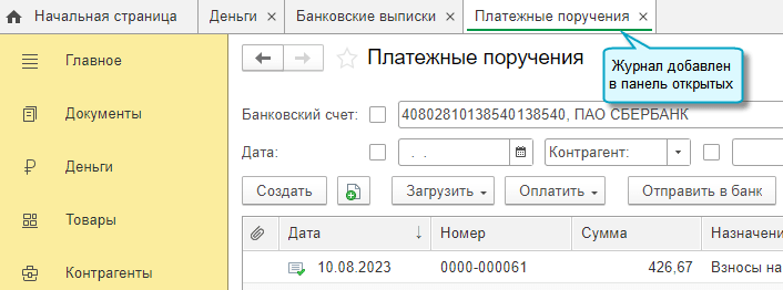 Добавлена возможность выводить на панель открытых несколько журналов документов. Это позволяет быстро переходить между журналами, без повторного открытия разделов.