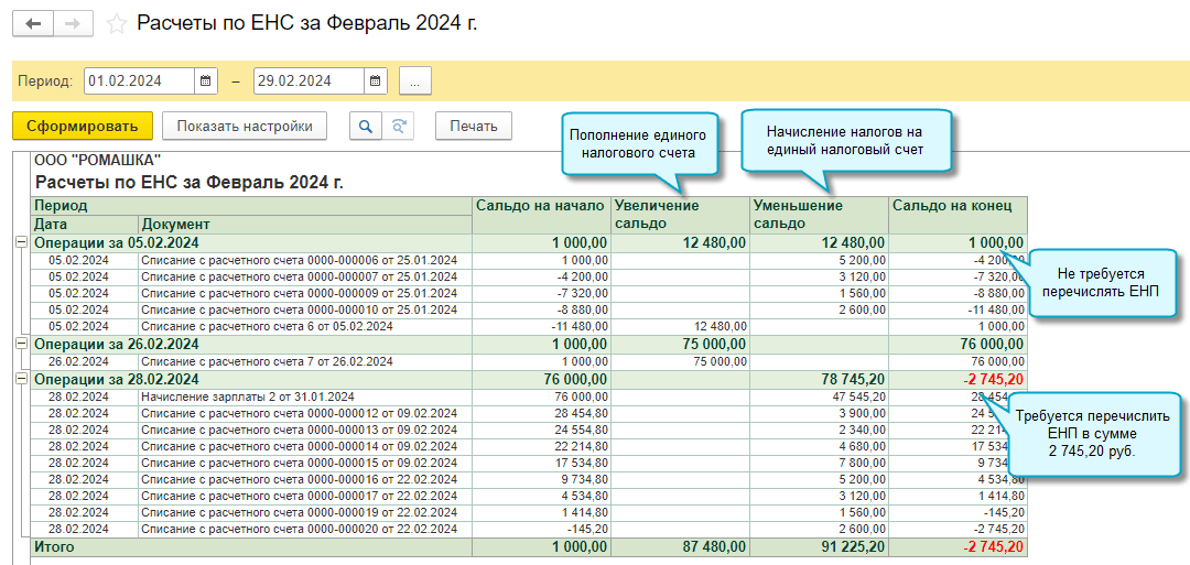 Добавлена возможность формировать отчеты по расчетам на едином налоговом счете за периоды начиная с 01.01.2024.