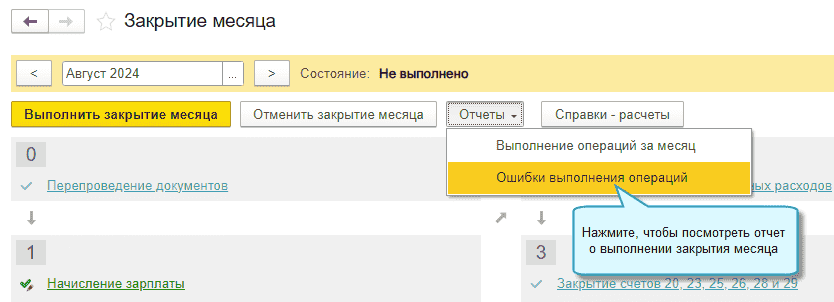 По окончании закрытия по расписанию посмотрите отчет о его выполнении, при наличии ошибок, устраните их, чтобы выполнилось следующее закрытие по расписанию.