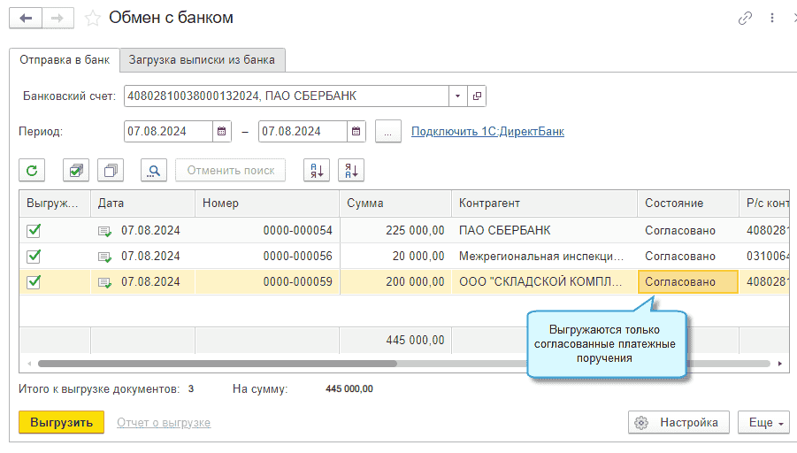 В платежное поручение добавлен статус "Согласовано", а так же информация кем было выполнено согласование. Согласованные платежные поручения отправляются в банк.