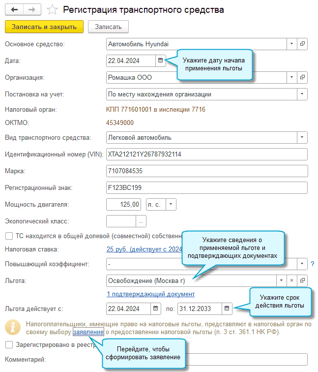 Для уже применяемых льгот потребуется дозаполнить данные о нормативном акте, предусматривающем льготу, и подтверждающих документах.