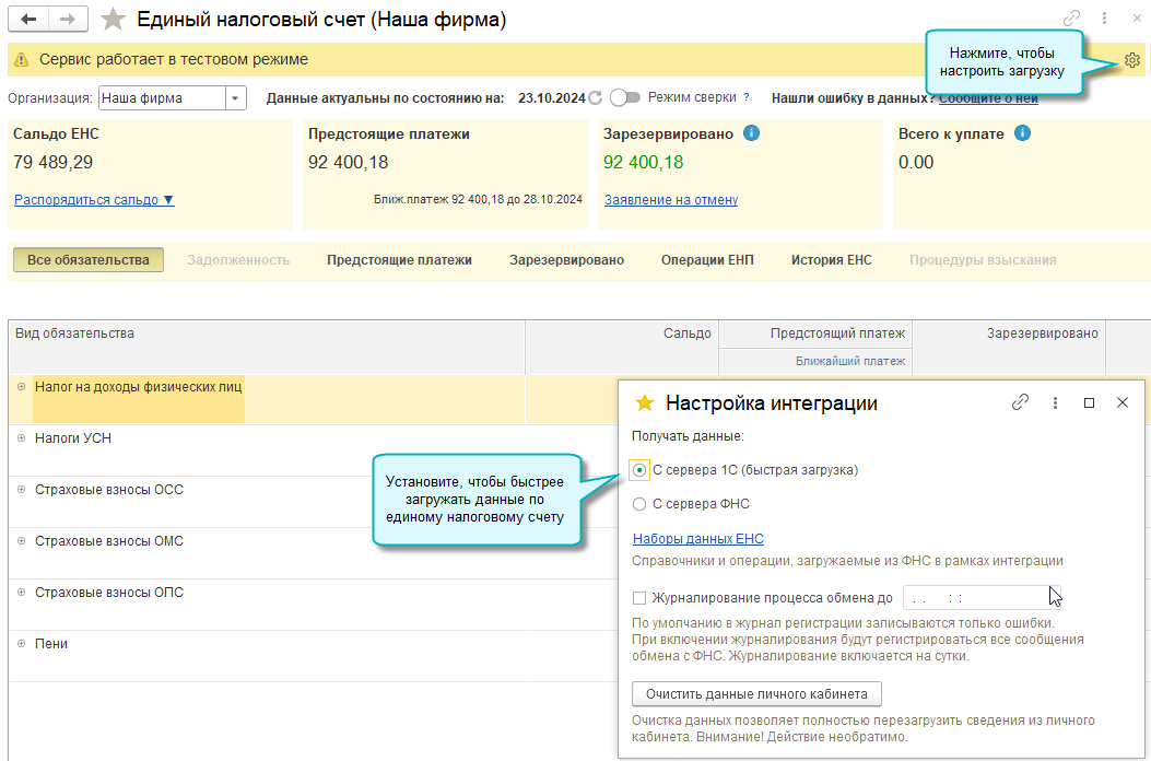 Добавлена возможность получать данные по единому налоговому счету с сервера 1С. Такая загрузка выполняется значительно быстрее.