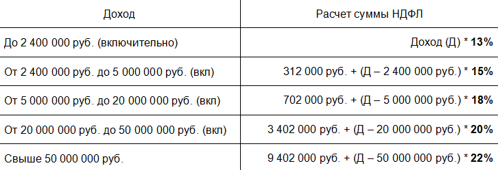С большинства доходов, выплачиваемых по трудовым договорам и договорам подряда, НДФЛ удерживается по такой прогрессивной шкале