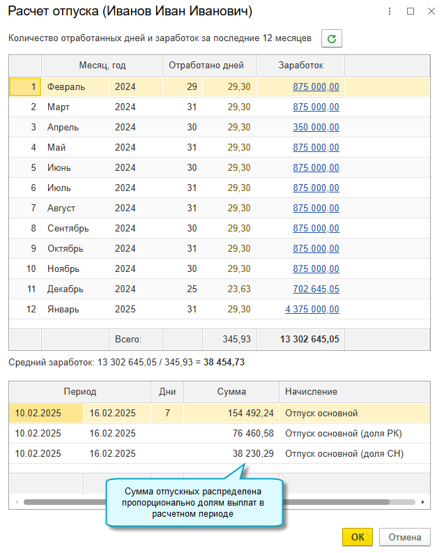 Начисление отпускных, больничных