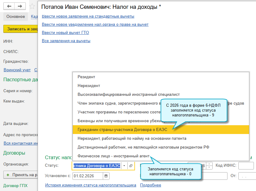 Обновлены коды статусов налогоплательщиков НДФЛ, используемые в форме 6-НДФЛ: