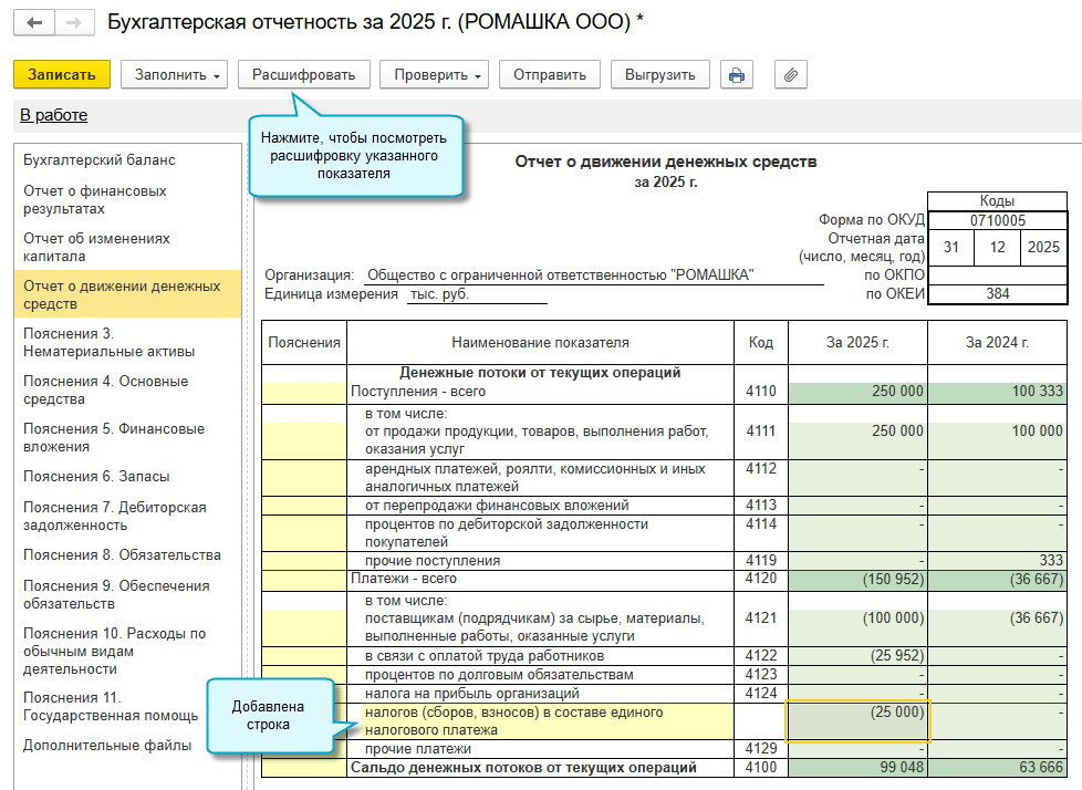 Поддержаны два варианта отражения единого налогового платежа в отчете о движении денежных средств: