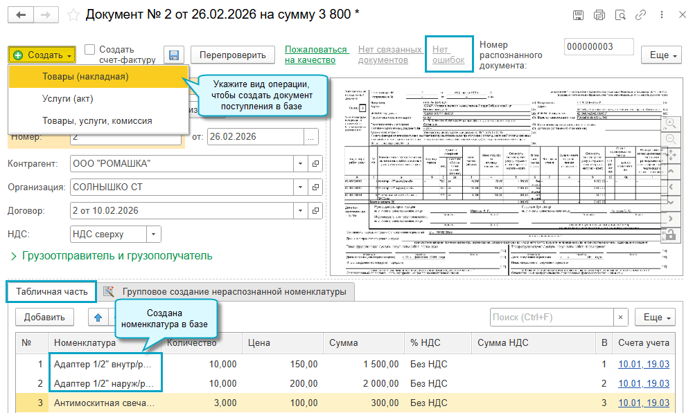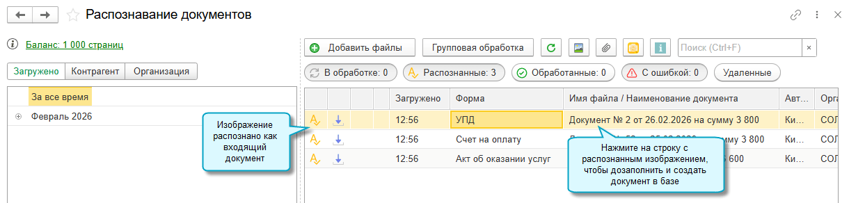 Останется проверить распознанные сервисом документы и ввести документы в базу, как это описано выше.