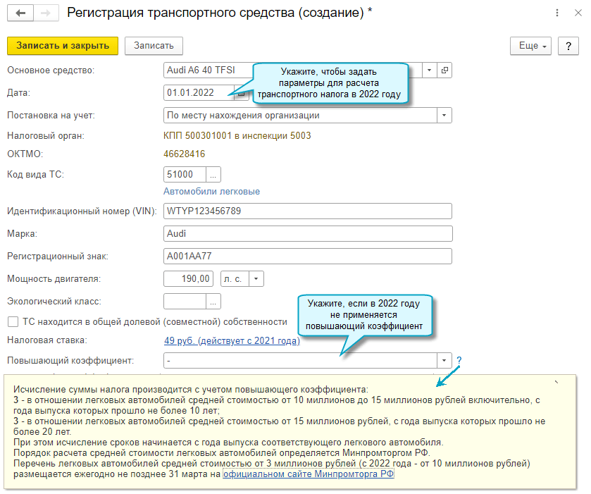 В 2022 году отменяется применение повышающих коэффициентов при уплате транспортного налога по автомобилям стоимостью от 3 млн. рублей до 10 млн. рублей включительно (Федеральный закон от 26.03.2022 № 67-ФЗ).