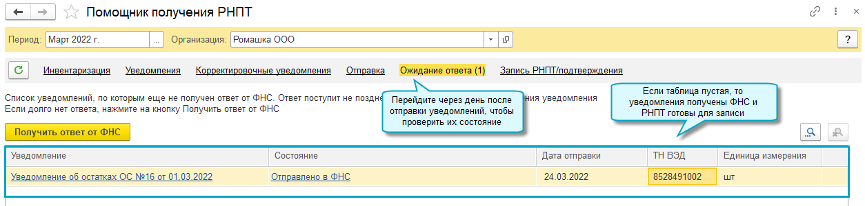 Дальнейшие шаги по получению РНПТ выполняются аналогично получению РНПТ на остатки товаров.