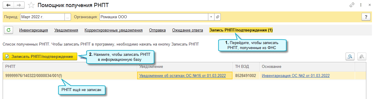 Дальнейшие шаги по получению РНПТ выполняются аналогично как для прослеживаемых основных средств.