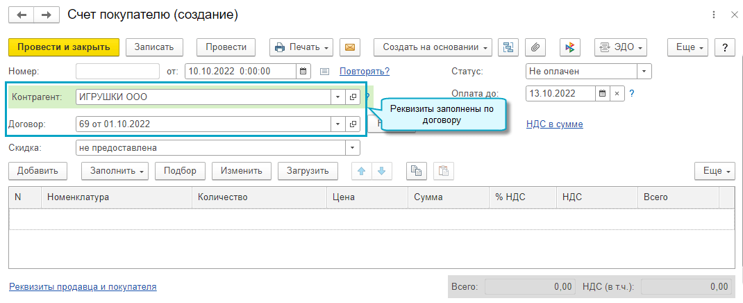 Добавлена возможность создавать документы на основании договора с контрагентом.