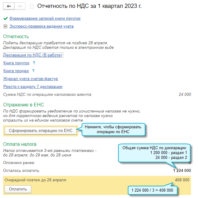 Подробнее о формировании начального остатка на ЕНС см. в Статье.