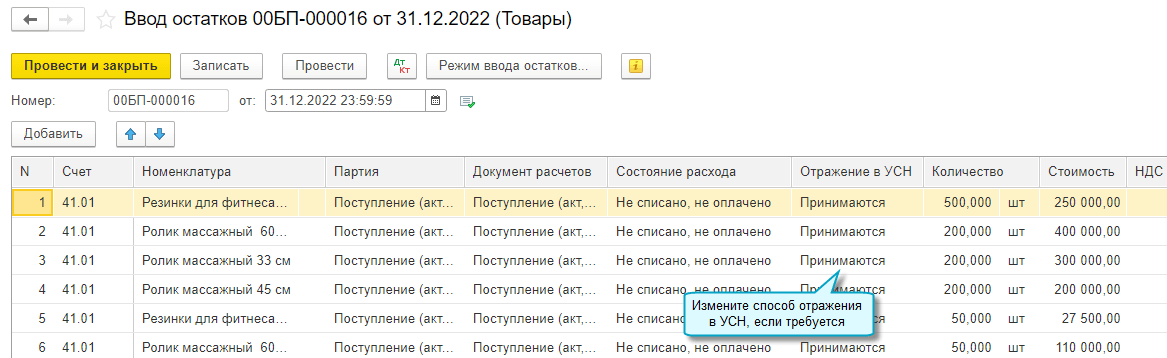 Если после ввода остатков внесли изменения в учет, отразили поступление или продажу, то требуется скорректировать ввод остатков.