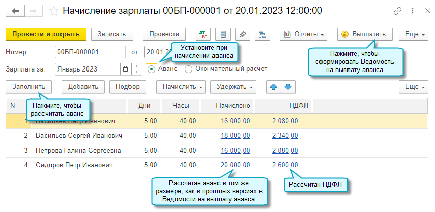 С 01.01.2023 перед выплатой аванса по зарплате требуется его начислить, чтобы рассчитать и удержать НДФЛ (Федеральный закон от 14.07.2022 № 263-ФЗ).