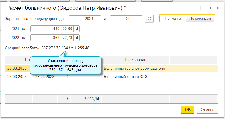 Добавлена возможность в расчете больничных с 01.01.2023 учитывать приостановление трудового договора на период мобилизации сотрудника (Федеральный закон от 07.10.2022 № 379-ФЗ).