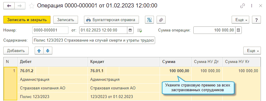 Добавлена возможность вести учет расчетов по страхованию на случай смерти и утраты трудоспособности сводно, без разбивки по застрахованным сотрудникам.