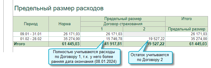 При одновременном действии нескольких договоров страхования предельный размер расходов для каждого договора определяется последовательно по следующим правилам: