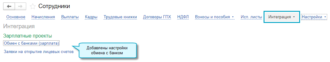 Простой интерфейс: меню "Сотрудники - Начисления".
