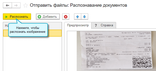 Тогда после добавления файла и распознавания чека потребуется открыть распознанный документ.