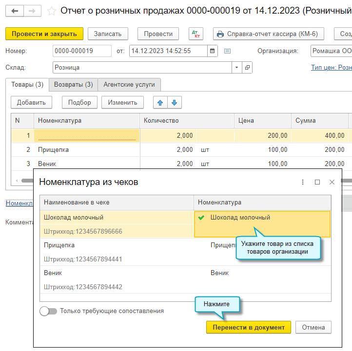Добавлена возможность загружать данные о продажах от оператора фискальных данных (ОФД). По чекам автоматически создаются отчеты о розничных продажах. Это помогает избежать ошибок при ручном вводе. Чтобы воспользоваться загрузкой, требуется подключиться в сервису 1С-Чеки ОФД по тарифу "1С-Чеки ОФД Расширенный". Подробнее...