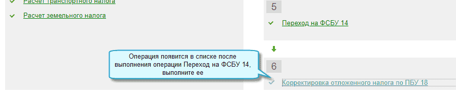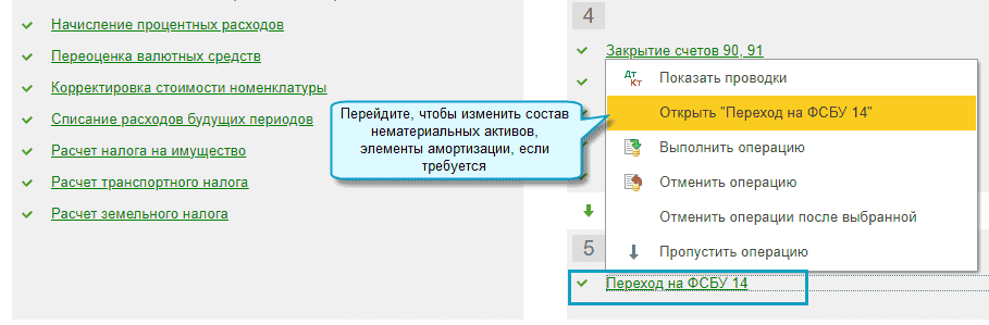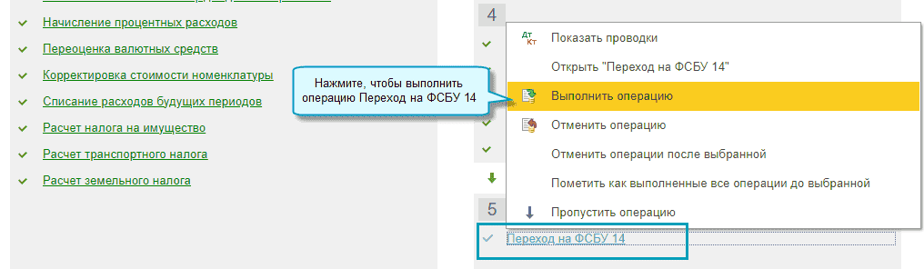 После внесения всех данных требуется выполнить регламентную операцию Переход на ФСБУ 14.