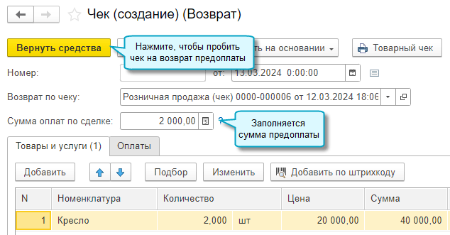 Возврат предоплаты покупателю