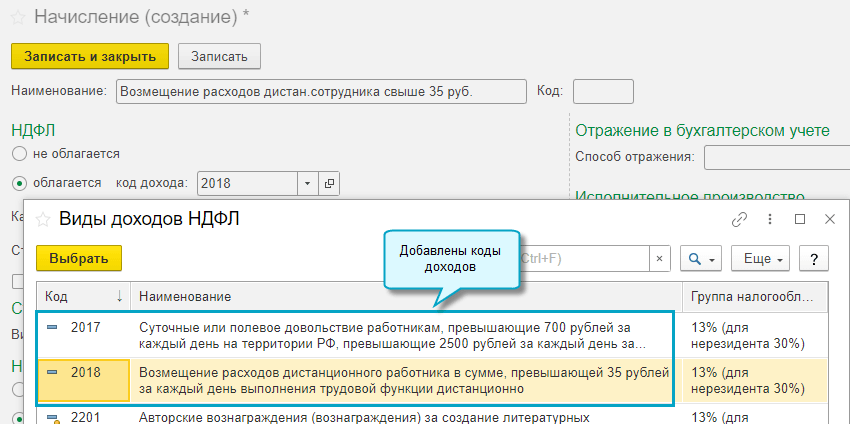 Коды доходов и вычетов по НДФЛ