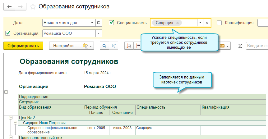 Добавлен отчет об образовании сотрудников. Он пригодится при ведении воинского учета.