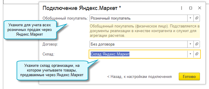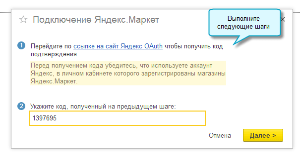 При первой загрузке потребуется выполнить настройку подключения Яндекс.Маркет.