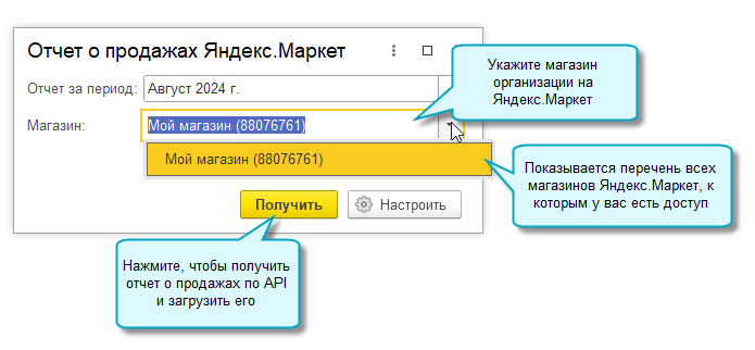Добавлена возможность загрузить отчет о продажах Яндекс.Маркет через API, когда при работе с маркетплейсом используются модели FBY и FBS.