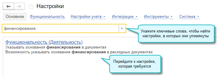 Добавлена возможность поиска настройки по ключевым словам.