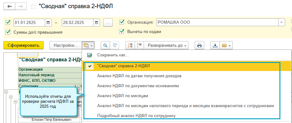 Отчеты по НДФЛ формируются с учетом ставок НДФЛ, действующих с 01.01.2025.
