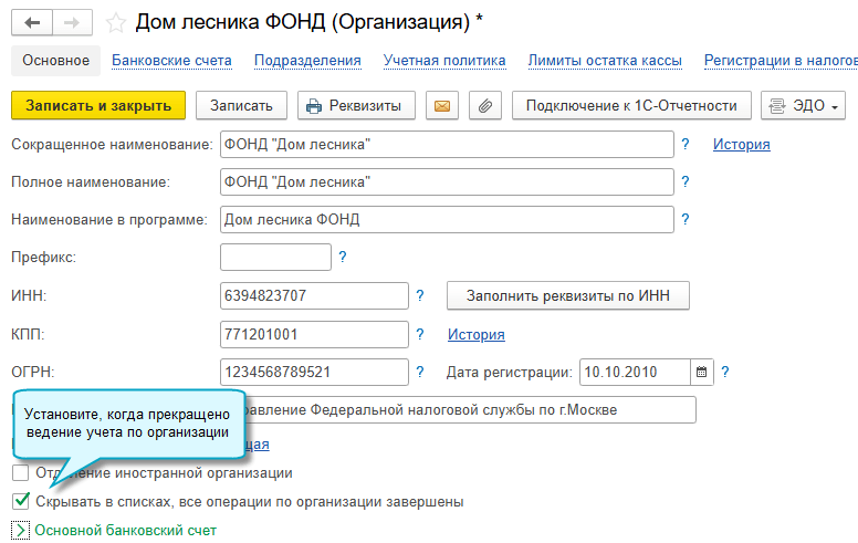 Добавлена возможность скрывать неактуальные организации при выборе организации в документах, отчетах, задачах организации и календаре отчетности. Используйте эту возможность, чтобы скрывать организации, по которым все операции завершены и прекращено ведение учета.